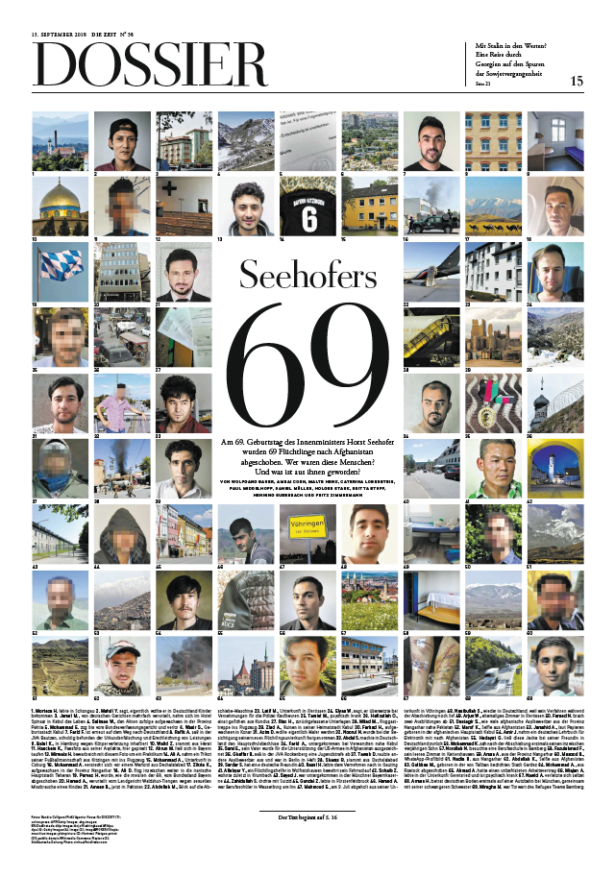 Zehn Redakteure aus unterschiedlichen Ressorts spürten für dieses Dossier im Herbst all diejenigen Flüchtlinge auf, die am 69. Geburtstag von Horst Seehofer abgeschoben wurden. Ihnen gefiel an dem Mammut-Rechercheprojekt, dass den 69, die bis dahin für viele nur eine Zahl waren, ein menschliches Antlitz gegeben wurde.